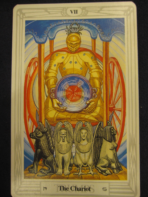 戰車這張牌的主題與意志力有關,這點除了從圖案上蓄勢待發的盔甲戰士姿態可看出來之外,也可從對應的巨蟹座特質看出,巨蟹身為創始星座,具有高度堅持的毅力,能夠不顧一切往前衝去,有如勇猛的戰士。